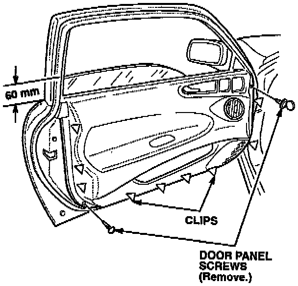 5. Remove the two door panel screws, release the nine clips with a clip remover, and take the panel off the door without bending the panel.