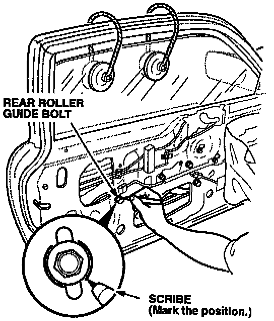 8. Mark a line around the original position of the rear roller guide bolt with a scribe.