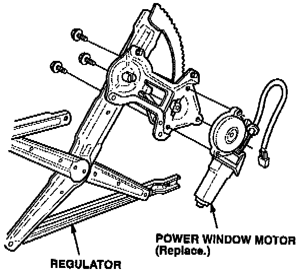 11. Remove the power window motor from the regulator (three bolts). Attach the new power window motor to the regulator using the same three bolts.