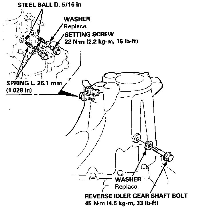 4. Install the reverse idler gear and reverse idler gear shaft in the clutch housing.