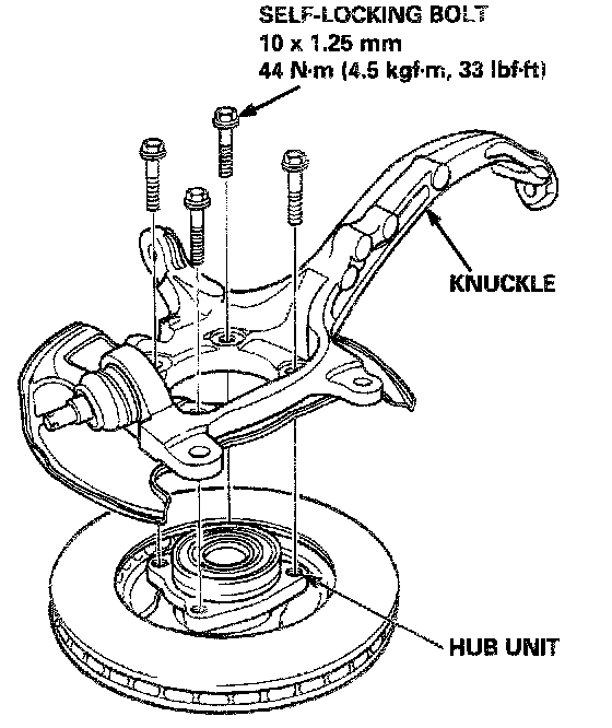 3. Install the knuckle on the hub unit and tighten the self-locking bolts.