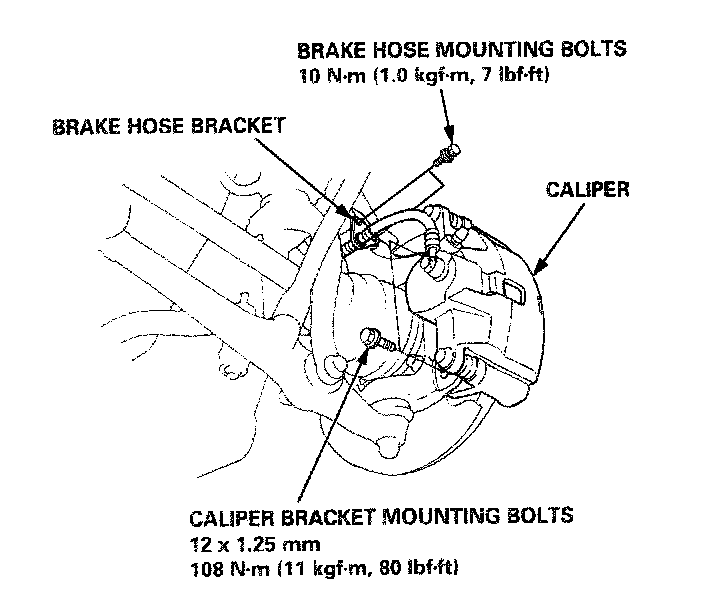 9. Install the brake hose bracket with the brake hose mounting bolts.
