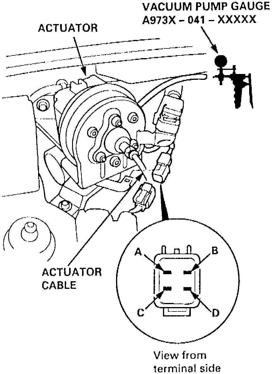 4. Actuator rod should pull in completely. If rod pulls in only part way or not at all, check for leaking vacuum line or defective solenoid.