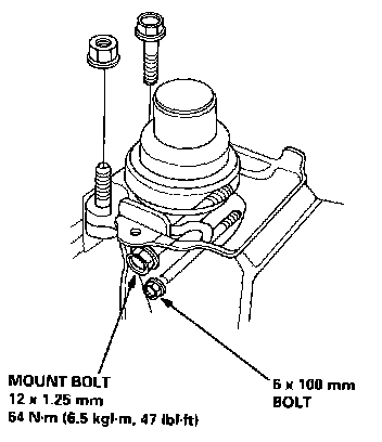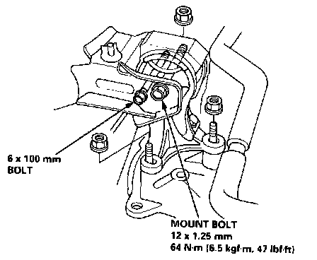 2. Tighten the mount bolt, then remove the 6 X 100 mm bolt.