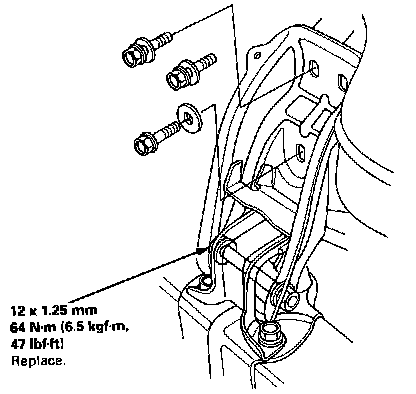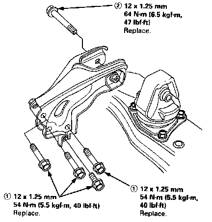 Install the engine in the reverse order of removal. Reinstall the mount bolts/nuts in the following sequence. Failure to follow these procedures may cause excessive noise and vibration, and reduce bushing life.