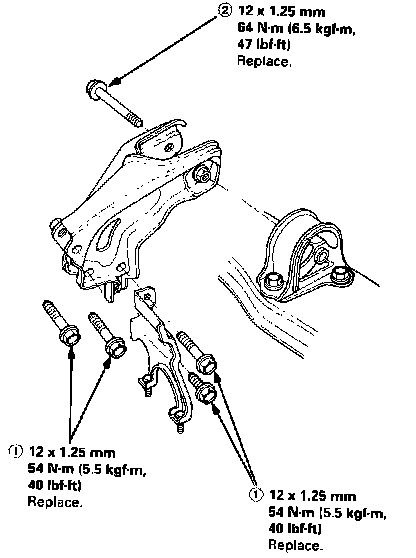 5. Install the rear mount bracket then tighten the bolts in the numbered sequence as shown (1) - (2).