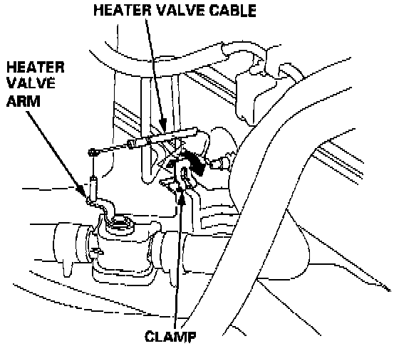 2. Open the clamp, then disconnect the heater valve cable from the heater valve arm.