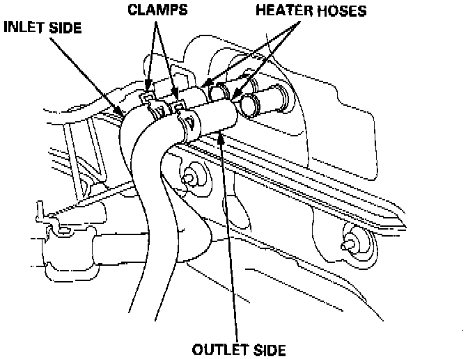 - Do not interchange the inlet and outlet heater hoses. Make sure that the clamps are secure.