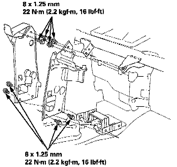NOTE: When removing the mounting nuts, take care not to damage or bend the fuel pipes, brake pipes, etc.