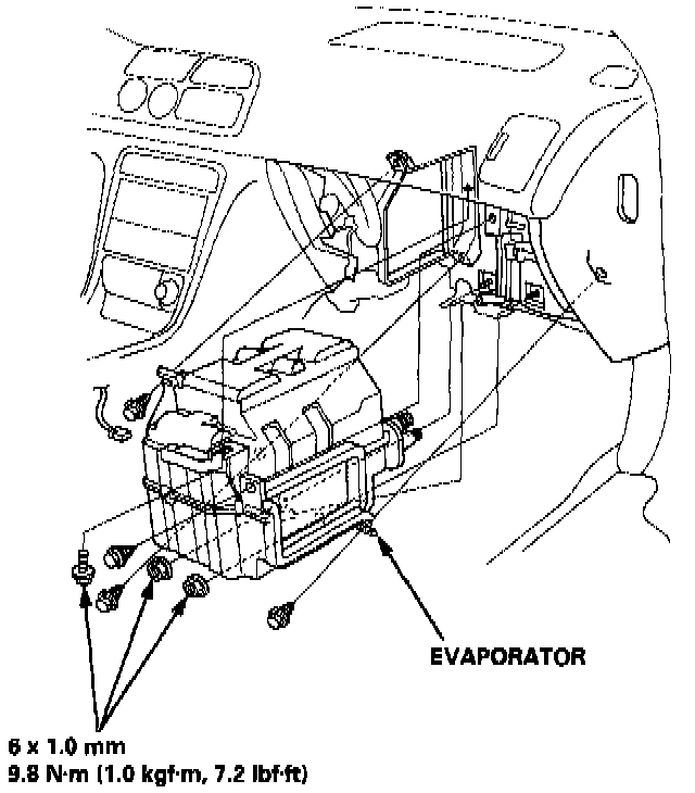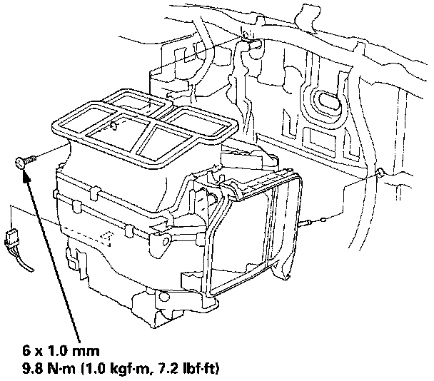8. Disconnect the mode control motor connector, then remove the mounting bolt and the heater unit.