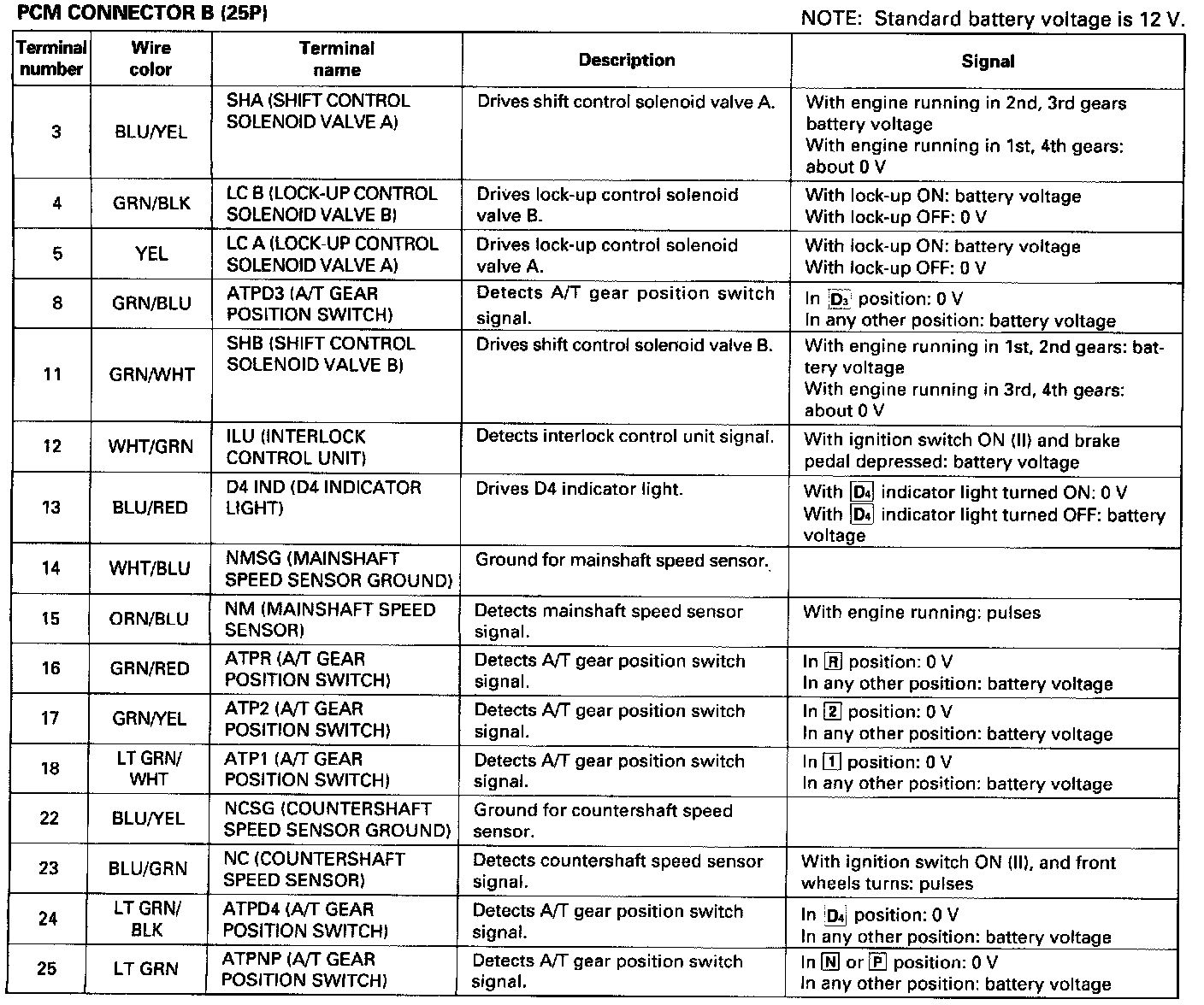 NOTE: Standard battery voltage is 12 V.