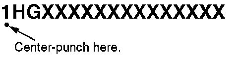 Center-punch a completion mark below the third character of the engine compartment VIN.
