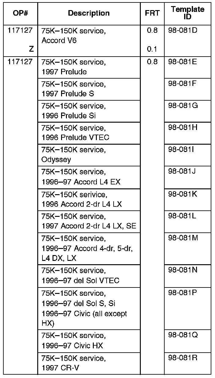American Honda will send letters to all owners of affected vehicles, reminding them of the 75-150,000 mile service, 9 years after the release of their models. This will begin in 2005.