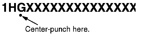 Center-punch a completion mark below the first character of the engine compartment VIN.