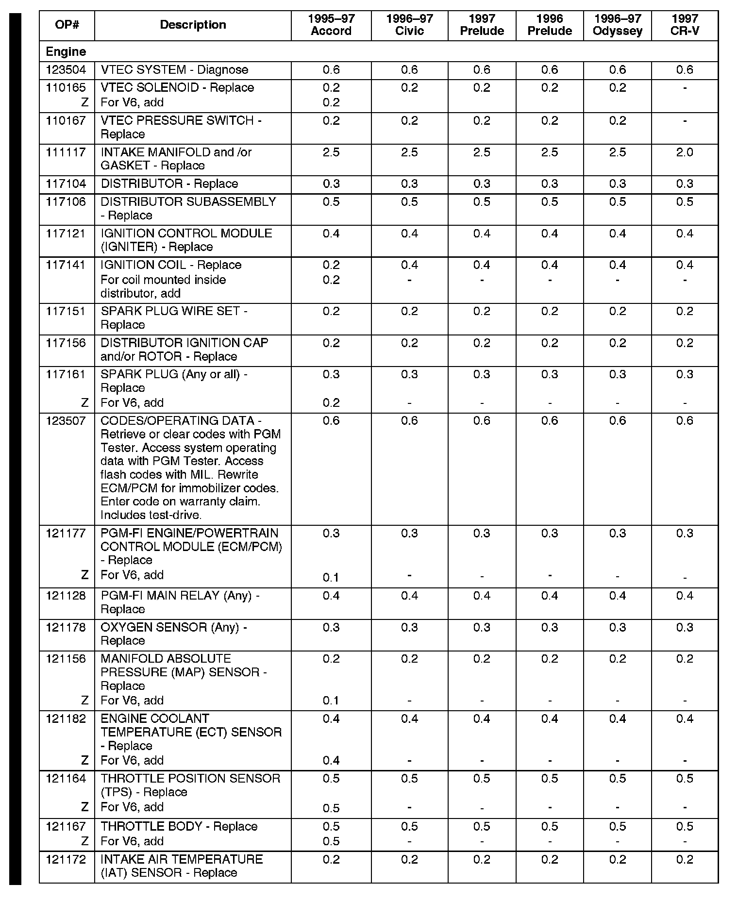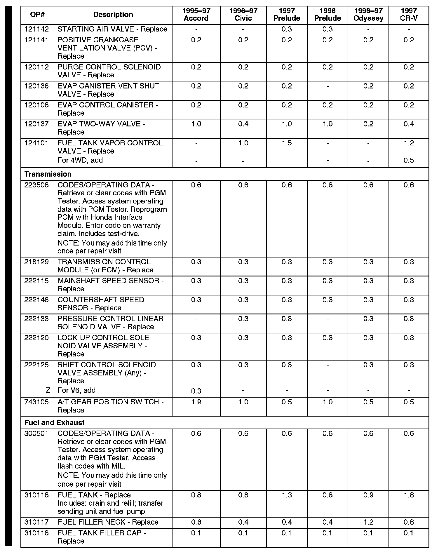 * If you cannot find the labor operation number for a particular emissions-related repair in the chart in this service bulletin, contact your local District Parts and Service Manager (DPSM) or call Warranty Dealer Support at 310-783-3240.*