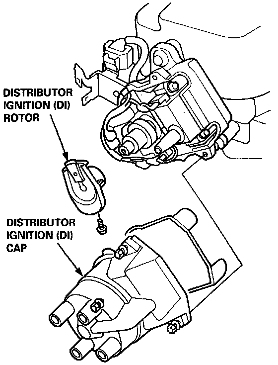 1. With the ignition switch OFF, remove the distributor ignition (DI) cap and distributor ignition (DI) rotor.