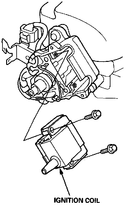 3. Remove the two bolts, and slide the ignition coil out of the distributor ignition (DI) housing.