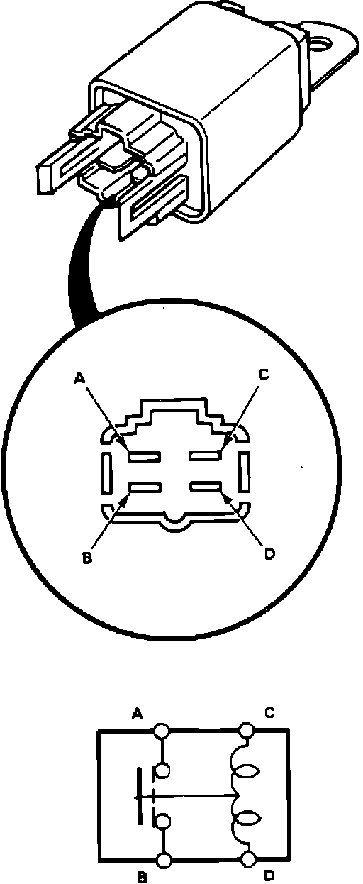 4. Disconnect battery voltage. There should be no continuity between A and B terminals of relay.
