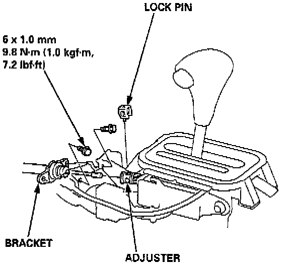 10. Check the cable adjustment after installing the shift cable.