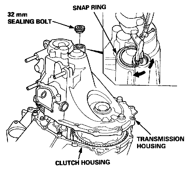 NOTE: The transmission housing can be removed with the oil gutter plate in the transmission housing.