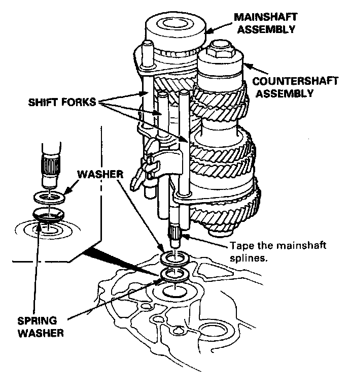 NOTE: Before installing the mainshaft and countershaft assemblies, tape the mainshaft splines to protect them.