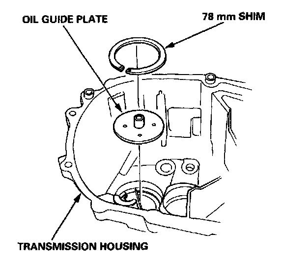 6. Install the oil guide plate and 78 mm shim into the transmission housing.