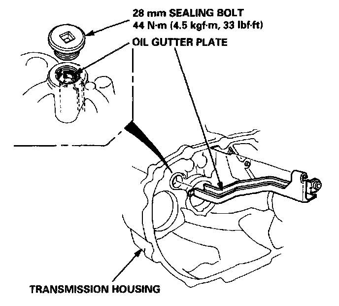 7. Install the oil gutter plate in the transmission housing.