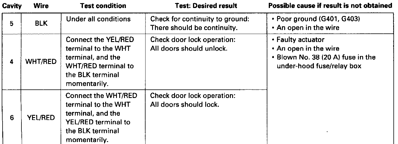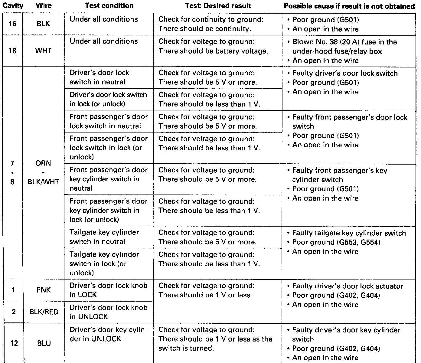 Control Unit Input Test (Without Keyless Entry)1. Remove the driver's door panel (see section 20).