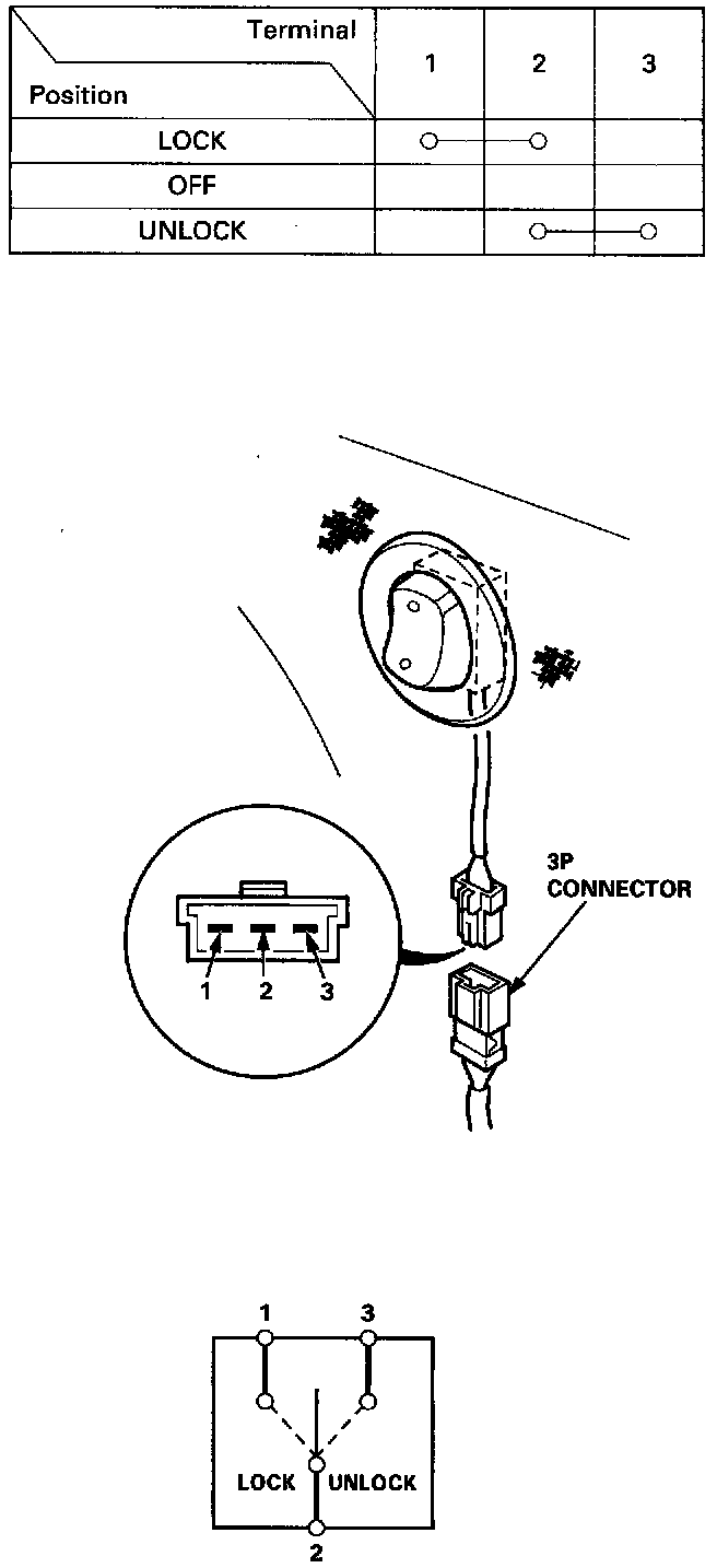 1. Remove the driver's door panel.2. Disconnect the 3P connector from the switch.