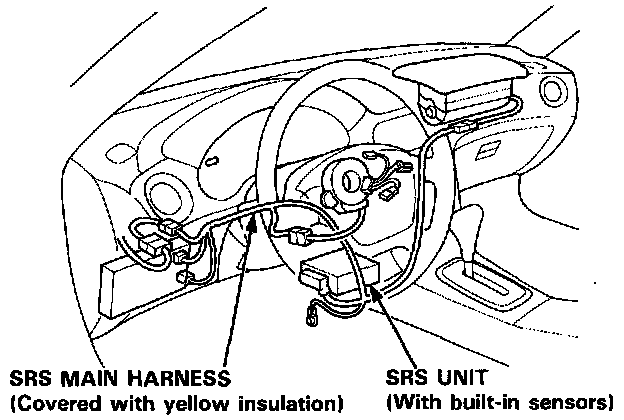 - All SRS wire harnesses are covered with yellow insulation. Before you disconnect any part of an SRS wire harness, disconnect the airbag connectors.