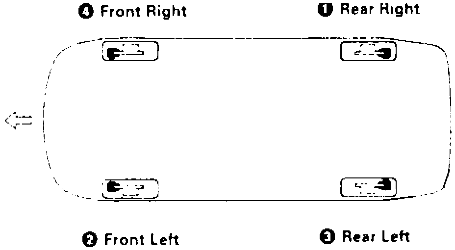 3. Repeat procedure for each wheel in sequence, Fig. 2, until air bubbles no longer appear in fluid. Master cylinder reservoir must be full when starting bleeding procedure and checked after bleeding each wheel.