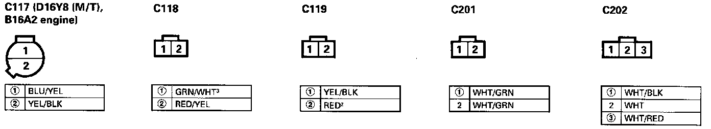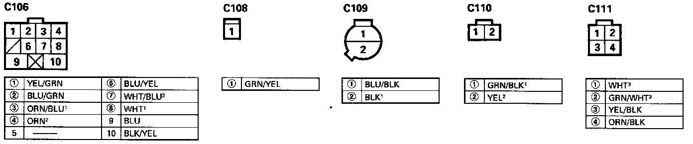 - Different wires with the same color have been given a number suffix to distinguish them (for example, YEL/BLK1 and YEL/BLK2 are not the same).
