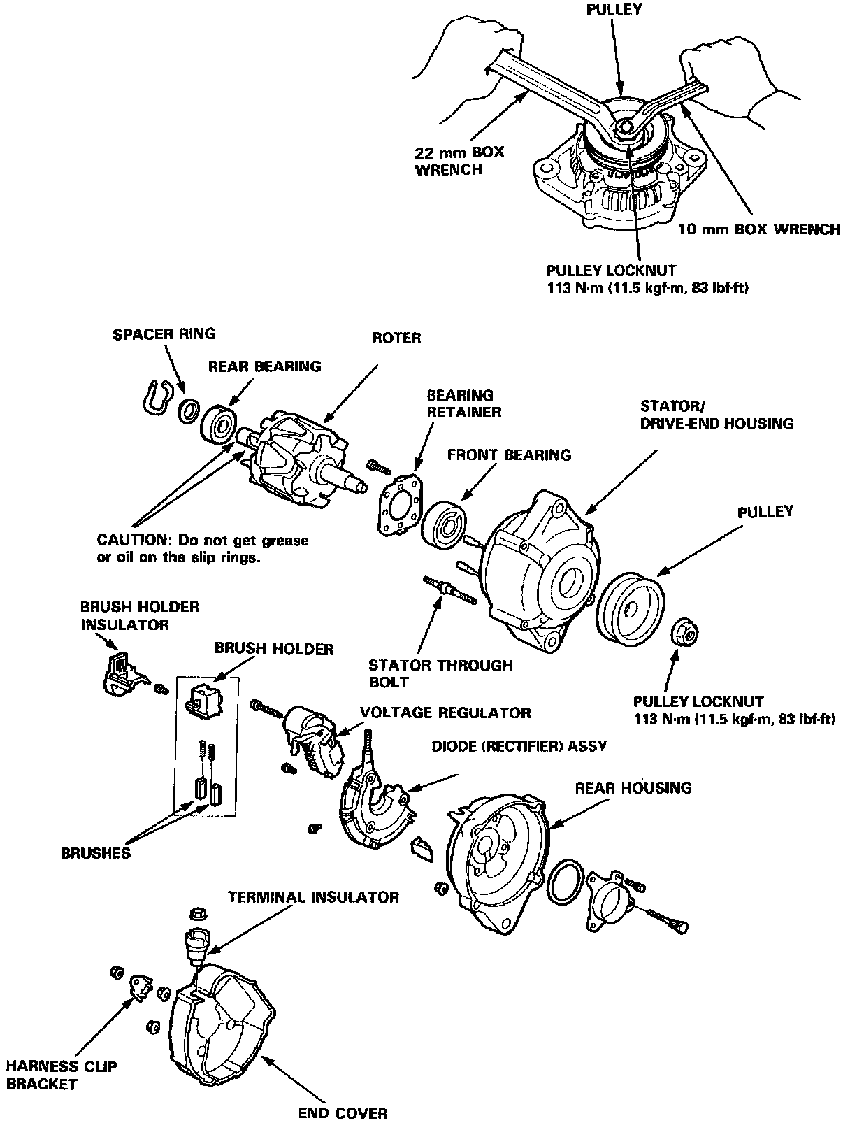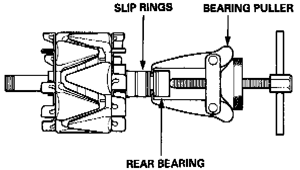 NOTE: It is not necessary to separate the pulley, drive end housing, and the rotor unless the front bearing needs replacement.