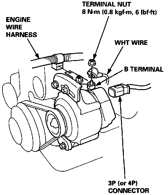 3. Remove the terminal nut and the WHT wire from the B terminal.