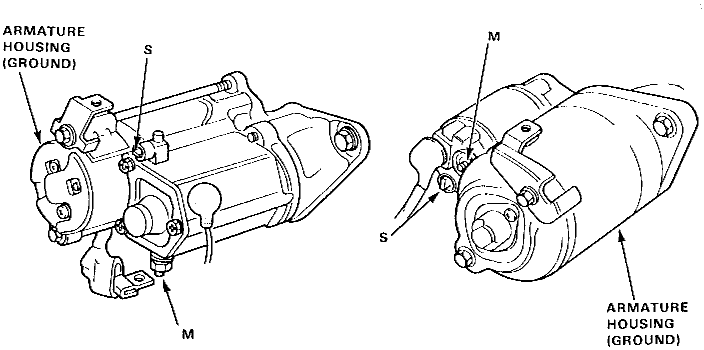 1. Remove and disconnect starter relay.Fig. 13 Starter Motor Terminal Locations: