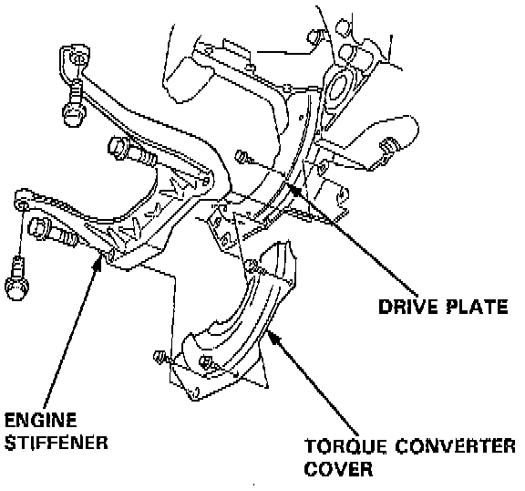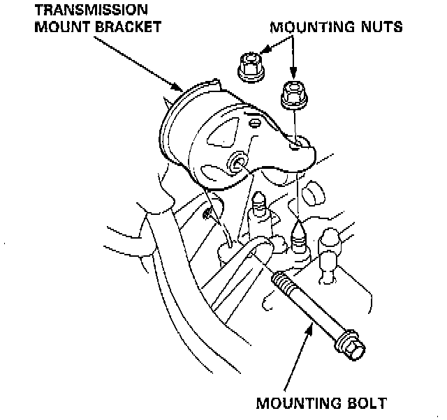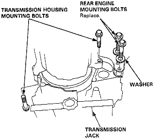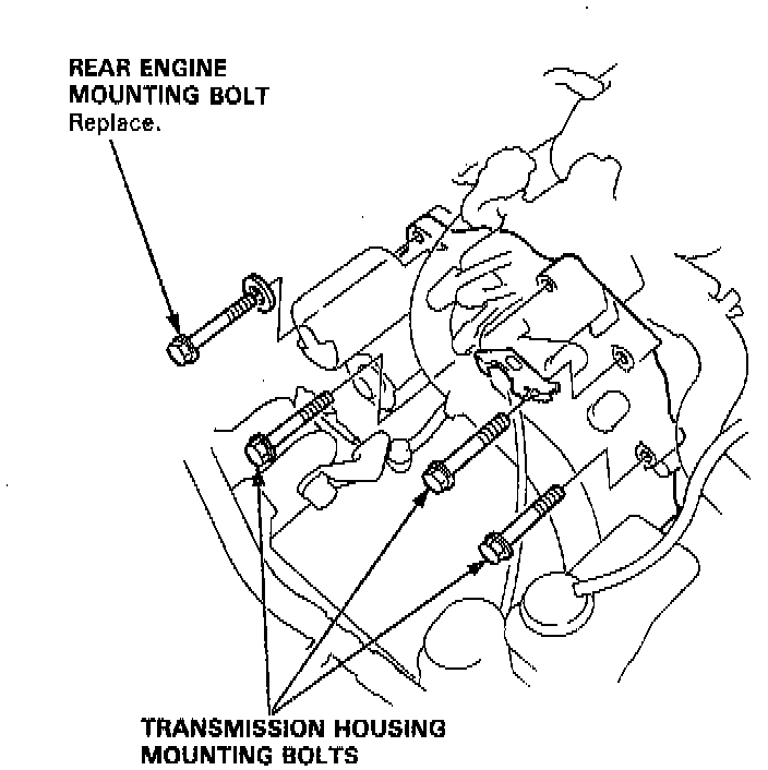 7. Remove the transmission housing mounting bolts and rear engine mounting bolt.
