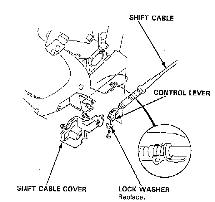 17. Remove the shift cable cover, then remove the shift cable by removing the control lever.