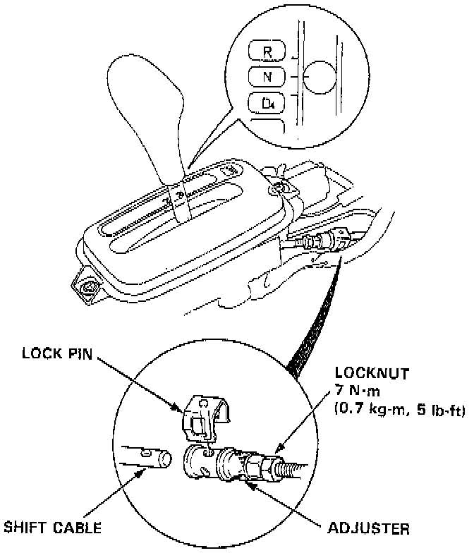 2. Shift to N position, then remove the lock pin from the cable adjuster.