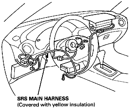 ^ All SRS wire harnesses are covered with yellow insulation, Before you disconnect any part of an SRS wire harness, disconnect the airbag connectors.