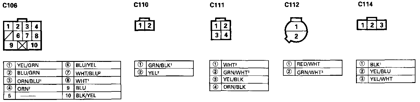- Different wires with the same color have been given a number suffix to distinguish them (for example, YEL/BLK1 and YEL/BLK2 are not the same).