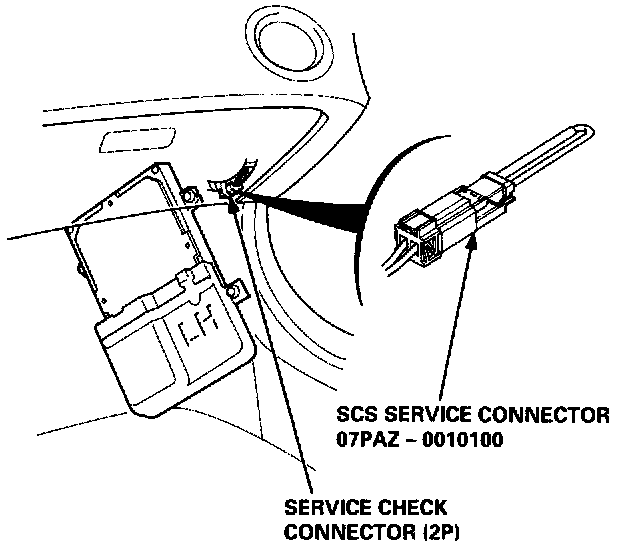 2. Pull out the service check connector located behind the right kick panel. Connect the special tool to the service check connector.