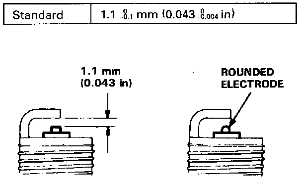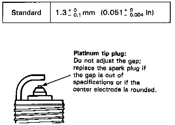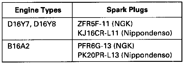 3. B16A2 engine: For platinum tip plug, do not adjust the gap; replace the spark plug if the gap is out of specifications or if the center electrode is rounded.