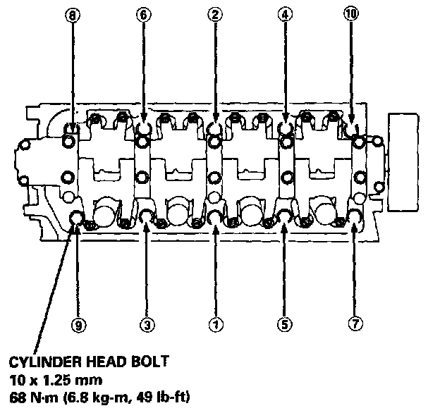 3rd step: Tighten bolts 1-10 68 Nm (49 ft. lbs.)