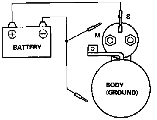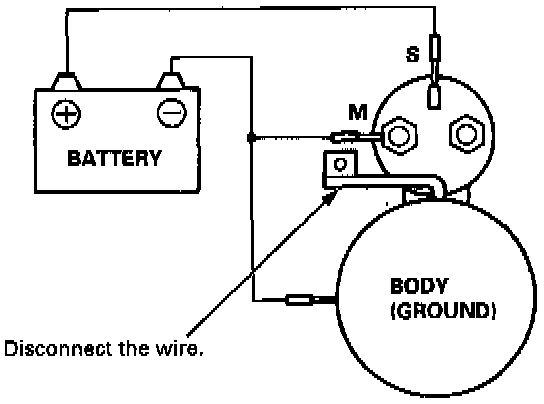 NOTE: Before starting the following checks, disconnect the wire from terminal M,and make a connection as described below using as heavy a wire as possible (preferably equivalent to the wire used for the car).Pull-In Coil Test: