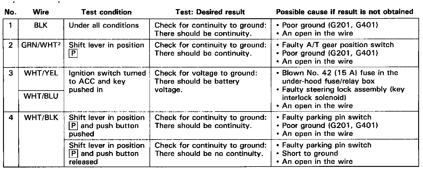 NOTE: If the shift lock solenoid clicks when the ignition switch is turned ON (II) and you step on the brake pedal (with the shift lever in [P]) the shift lock system is electronically normal; if the shift lever cannot be shifted from [P], test the A/T gear position switch.