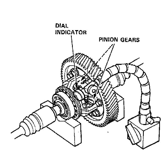 2. Measure backlash of both pinion gears. Standard (New): 0.05 - 0.15 mm (0.002 - 0.006 inch).