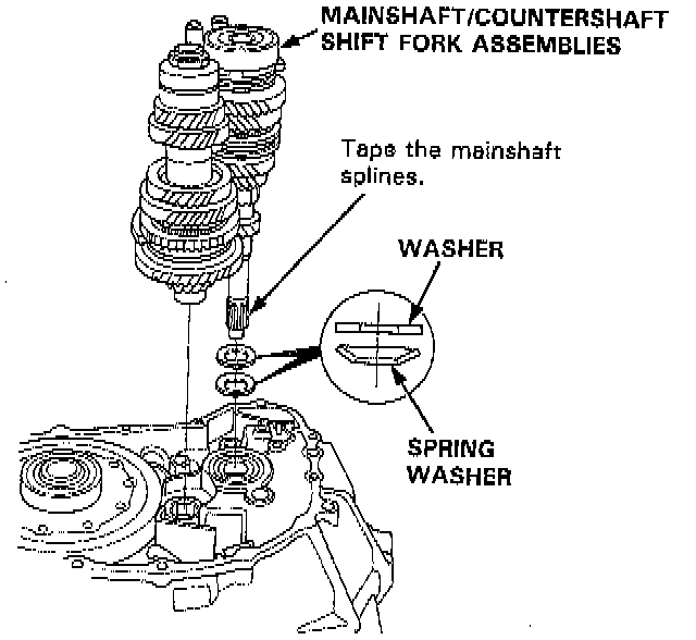 12. Install the mainshaft, countershaft, and shift fork assemblies.
