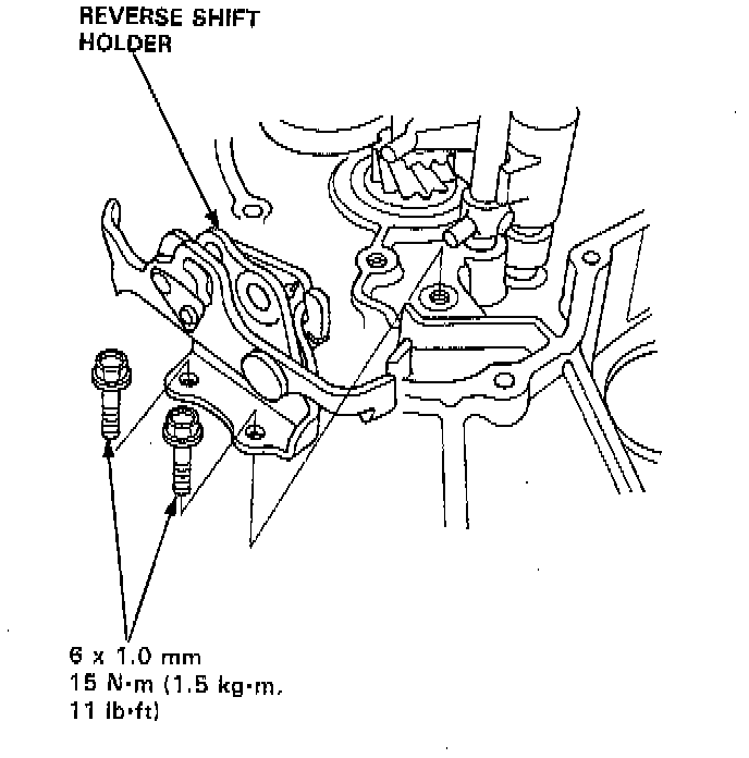 15. Install the reverse idler gear and reverse idler gear shaft.