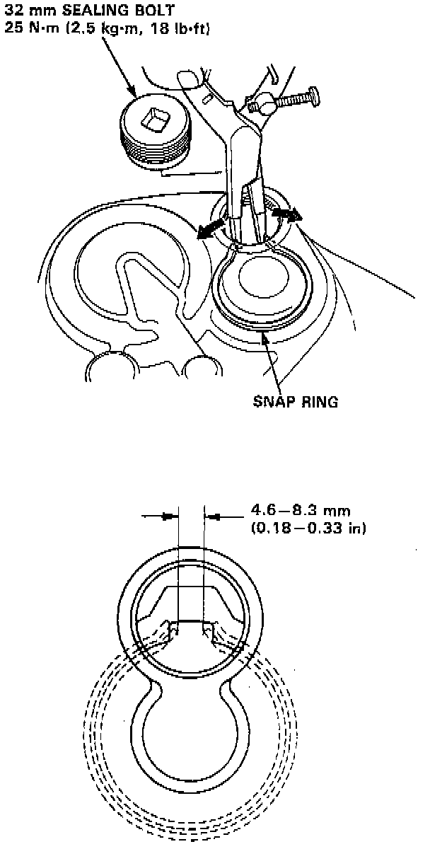 NOTE: Apply liquid gasket (P/N 08718 - 0001) to the threads of the 28 mm plug bolt and interlock guide bolt.