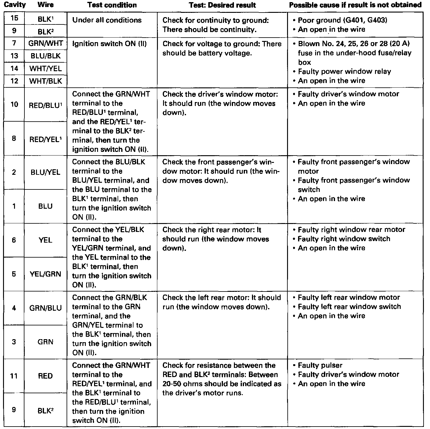 - If all the input tests prove OK, the power window master switch must be faulty; replace it.